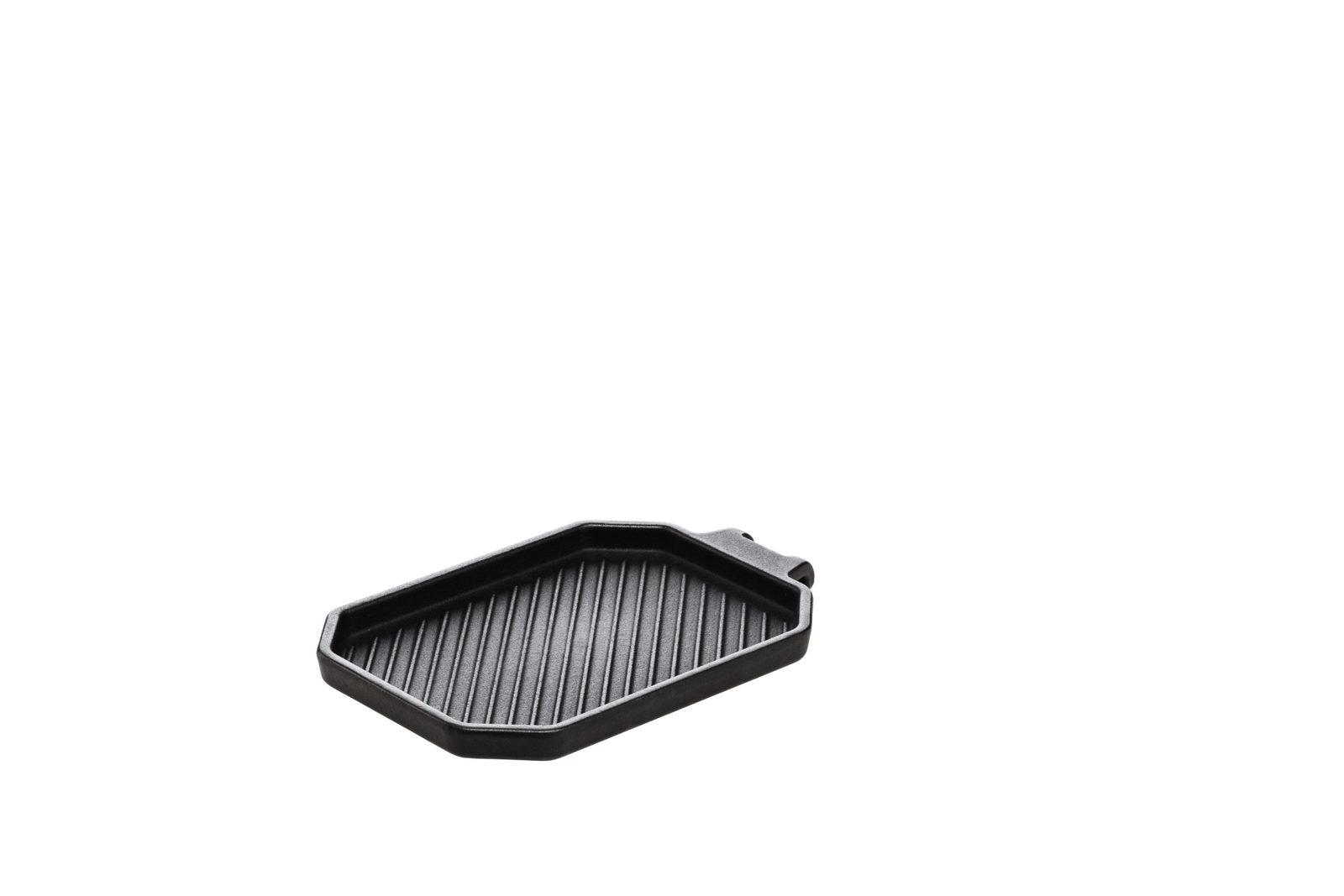 Čuguna panna ar rokturi. Garums ar rokturi: 51,2 cm. Čuguna virsmas izmēri: 16,4×24,5 cm. Čuguna komponentam nav nepieciešama papildu īpaša sagatavošana, jo tā jau ir rūpnīcā sagatavota lietošanai. Pannas rokturi var noņemt, un to var lietot cepeškrāsnī. Tā ir piemērota grilēšanai, jo ir grilēšanas rievas. Ceptais ēdiens iegūst skaistu “grila svītru” rakstu. Kopšana: produkts nav piemērots mazgāšanai trauku mazgājamā mašīnā. Pēc lietošanas ieteicams ieeļļot ar augu eļļu.