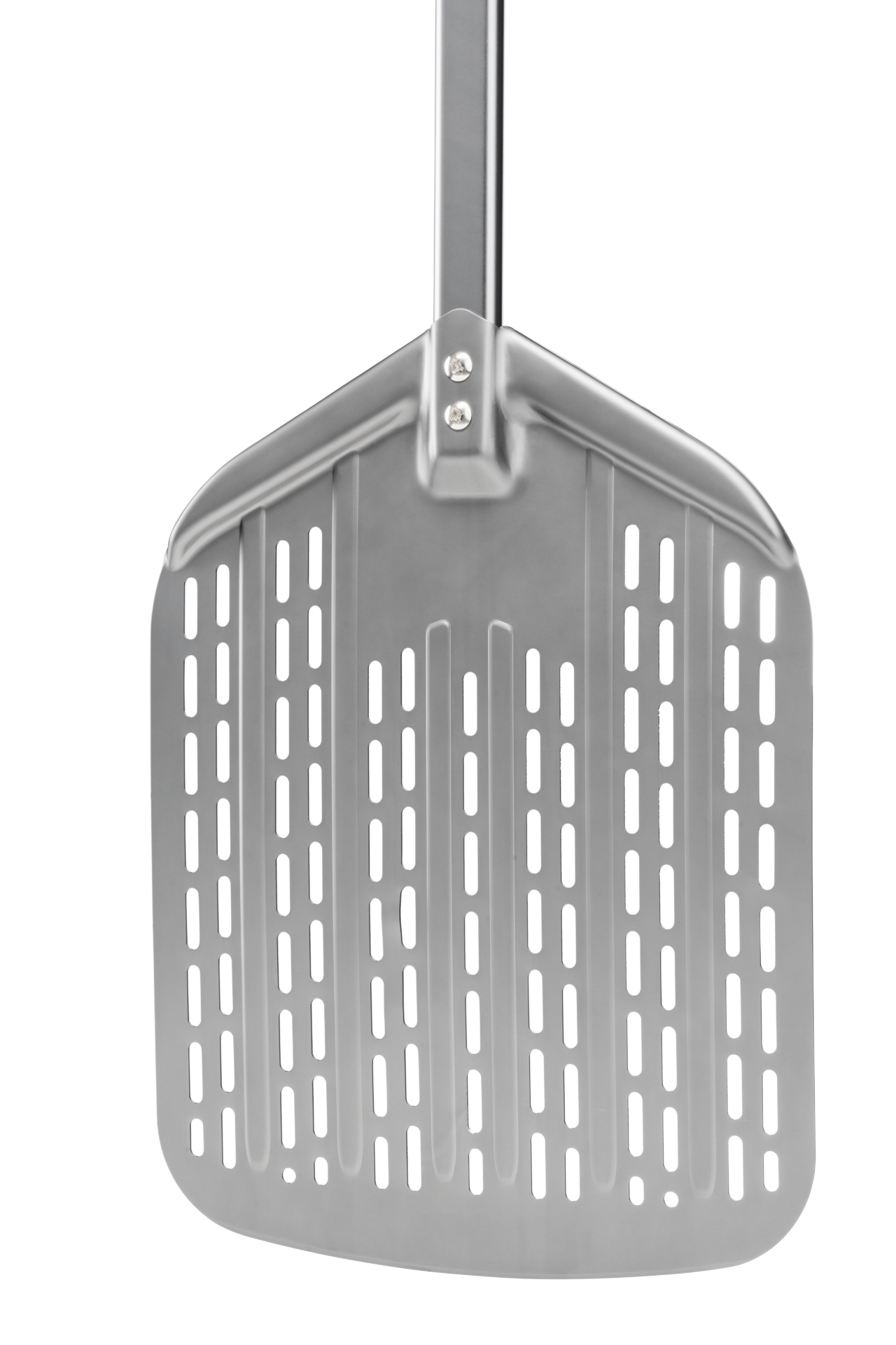 Kvalitatīva perforēta picas lāpsta, kas ļauj ērti ielikt picu un izņemt to no krāsns. Izgatavota no alumīnija, ir viegli un ērti lietot. Garums ar rokturi: 79,5 cm. Pamatnes platums: 29,6 cm. Šīs picas lāpstas priekšrocība ir perforētā pamatne. Izmantojot šādu lāpstu, ievērojami samazināsies miltu daudzums, kas sadrūp uz cepamās pamatnes un neļaus tai piedegt.